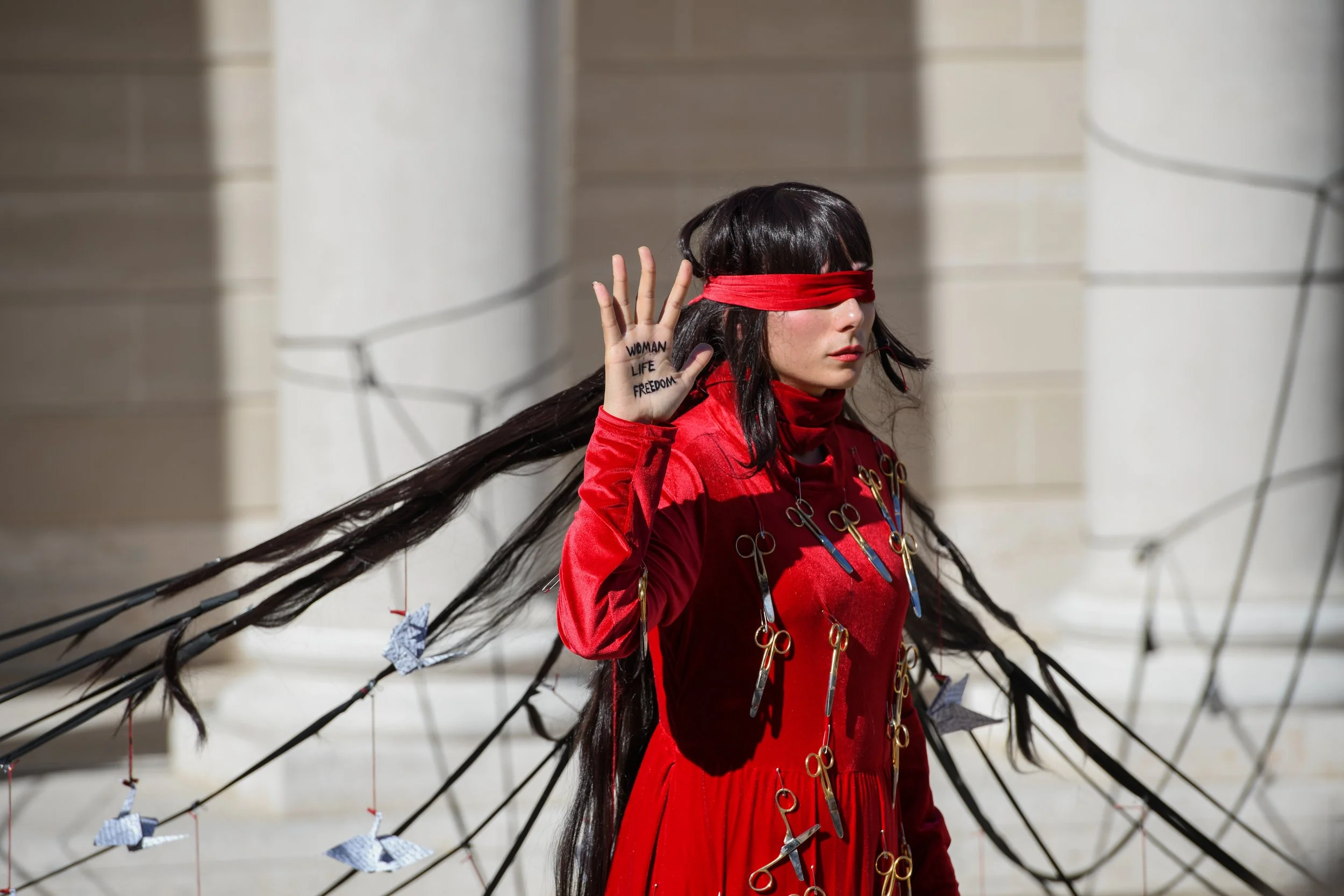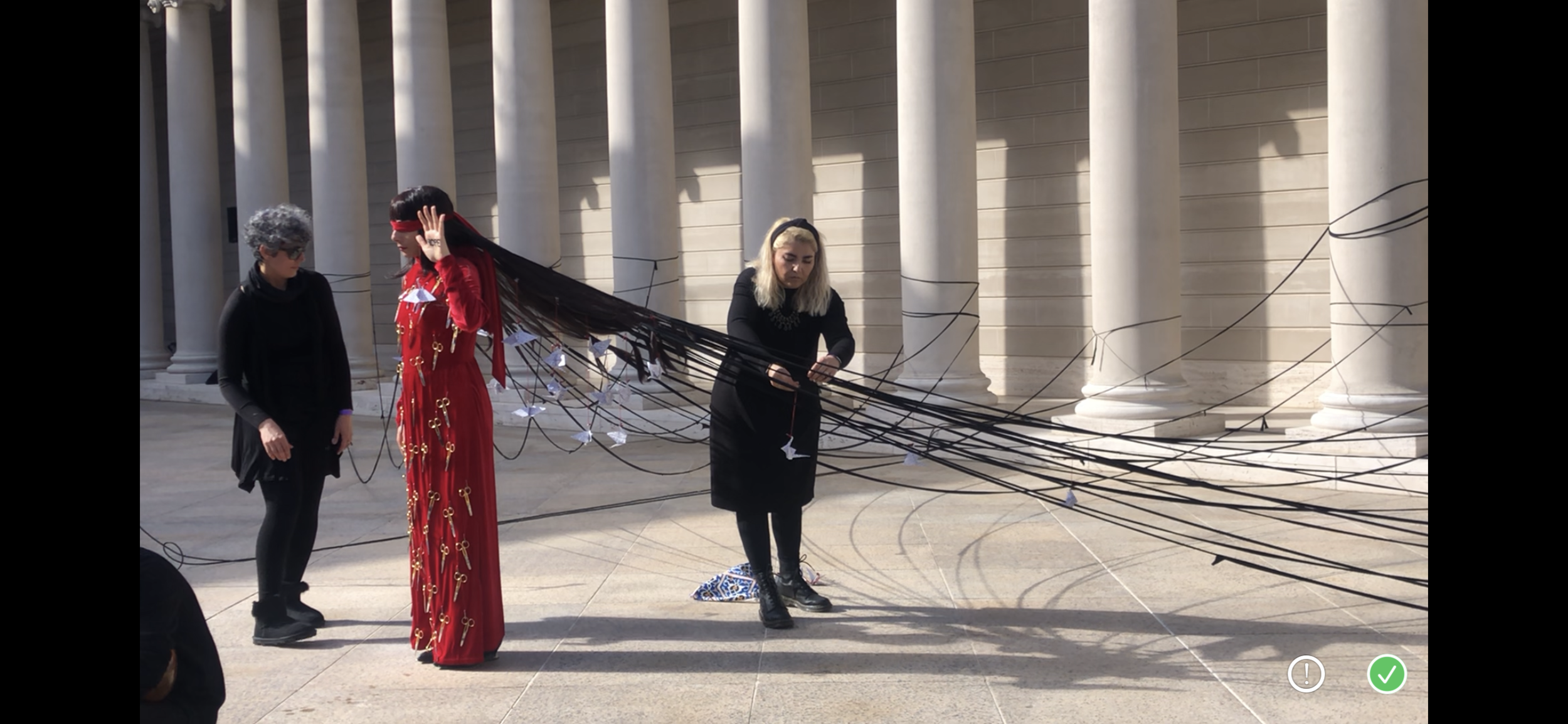 This performance was a continuation of “The Wind in My Hair” program, curated by Katayoun Bahrami in Clarion Alley, San Francisco, and presented in collaboration with Mobina Nouri’s work at the Legion of Honor Museum for the Woman, Life, Freedom movement, showing solidarity with the brave women of Iran.